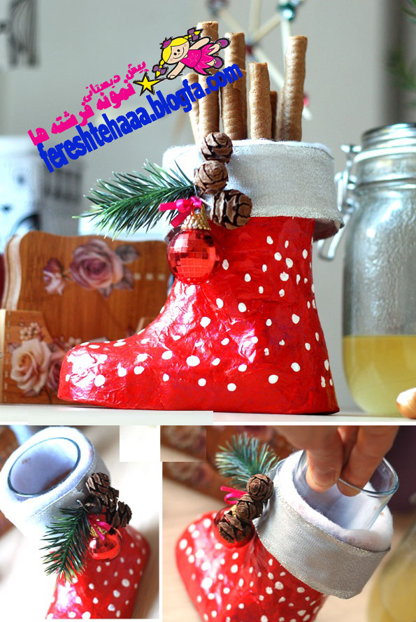 برچسبها: کاردستی , کاردستی با روزنامه باطله , کاردستی چکمه بابانوئل , پوتین بابانوئل